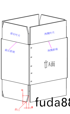 C:?正方箱的(de)前(qian)后內葉(ye)片(pian)與兩(liang)側(ce)外葉片(pian),尺寸通(tong)常一(yi)樣(yang),一(yi)定(ding)要切(qie)斜口(kou)處理才好成型(xing)。