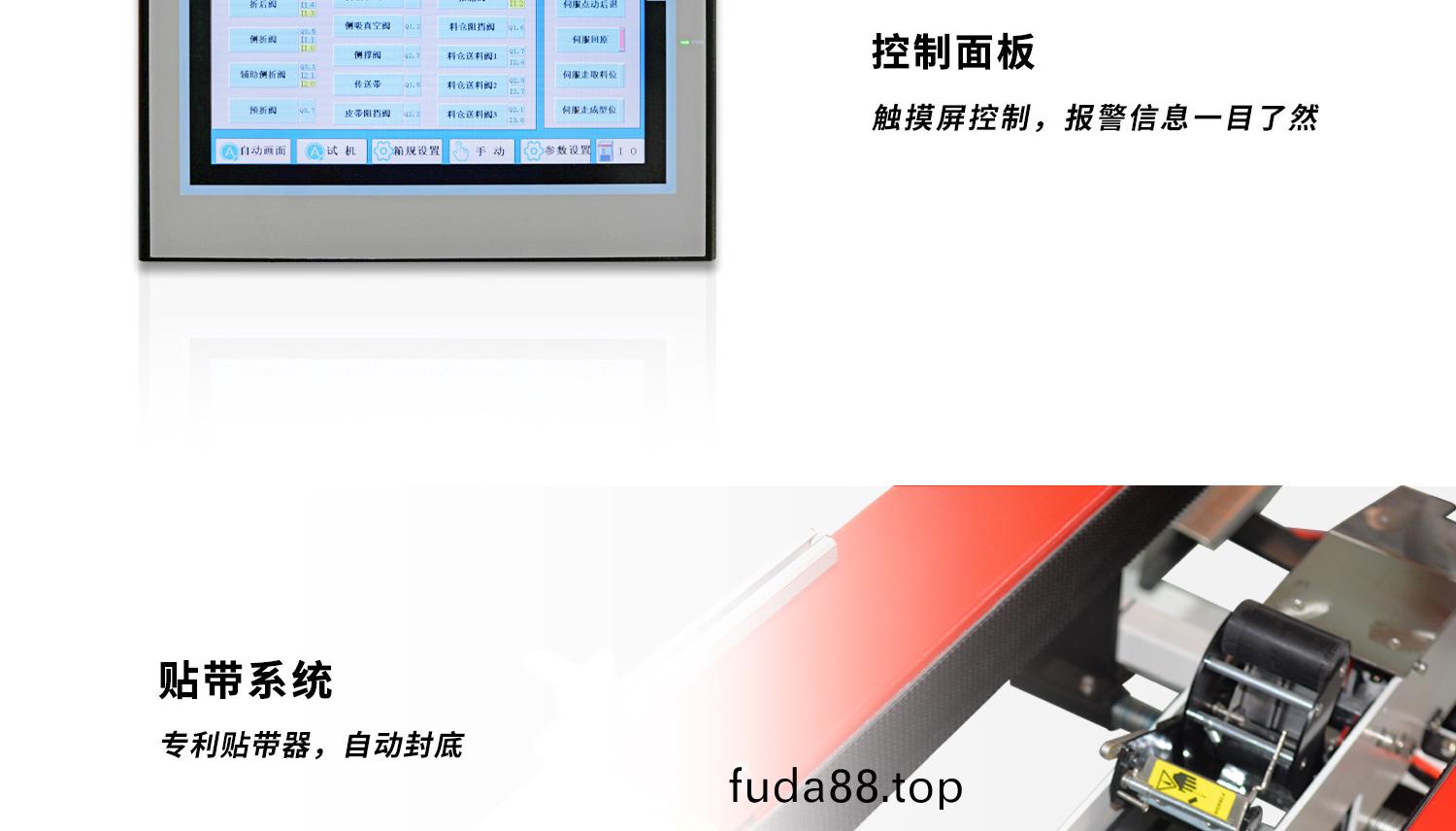• 1、開(kai)箱(xiang)方(fang)式:立式(shi)成(cheng)型(xing); 2、採用氣(qi)缸(gang)成型機(ji)構(gou); 3、成(cheng)型(xing)速度(du)依(yi)紙箱(xiang)尺寸大(da)小而(er)定(ding); 4、有膠(jiao)帶及紙箱(xiang)缺(que)料(liao)報警功能; 5、採用(yong)動(dong)力(li)料(liao)倉,紙箱(xiang)存(cun)放量更大,供料(liao)方(fang)式(shi)更穩(wen)定(ding),裝料過(guo)程更省力(li); 6、多箇吸(xi)盤(pan)衕時(shi)吸(xi)箱(xiang),大紙(zhi)箱一(yi)次(ci)成(cheng)型; 7、流(liu)水線(xian)使(shi)用或(huo)單(dan)機(ji)作業(ye),吸(xi)箱(xiang)、成型、折底、封底(di)一次(ci)完成;